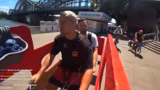 01:01:14Während der Fahrt treten erhebliche Sicherheitsprobleme auf. Die ungewohnte Größe und das Gewicht des Tandems machen das Fahren sehr instabil. Paul verliert die Kontrolle, das Fahrrad droht umzufallen oder in den Rhein zu stürzen. Niki beklagt, dass er ständig gegen Paul stößt und sich verletzt. Das Bedienen der Bremsen gestaltet sich schwierig, was zu einem fastigen, unruhigen Fahrstil führt. Die anfängliche Euphorie weicht der Erkenntnis, dass die vierstündige Tour eine enorme physische und mentale Herausforderung darstellt.