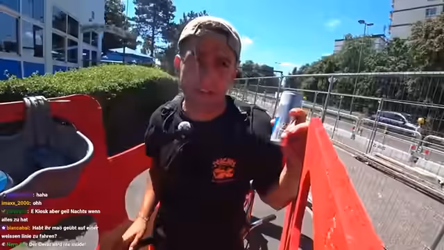 02:45:01Während der Fahrt interagieren die Streamer stark mit dem Chat, unterhalten sich über die Landschaft und stellen Schätzfragen, wie zum Beispiel nach dem Kokaingehalt in sichtbaren Containern. Die Route führt durch ein industrielles Gelände, das möglicherweise zu Bayer Leverkusen gehört. Die Stimmung ist trotz der Anstrengung positiv, und die positiven Reaktionen des Chats werden gelobt.