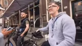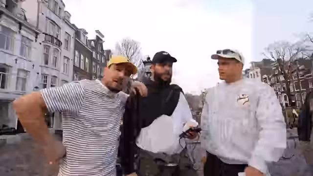 02:23:00Zwischen den Aktivitäten promotet das Team seinen neuen Song 'Mon Amour', der gerade veröffentlicht wurde. Sie bitten die Zuschauer, ihn auf Streaming-Plattformen zu hören. Parallel dazu führen sie weitere Interviews mit Touristen, um deren Eindrücke von Amsterdam einzufangen. Die Gespräche sind kurz, aber positiv und spiegeln die internationale Atmosphäre der Stadt wider.