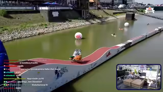 00:19:46Die Streamer Niki Stemmler und Paul haben ein ungewöhnliches Tandem aus einem London City Bus gebaut, das jedoch beim Versuch, von Köln nach Düsseldorf zu fahren, nach nur 12 Kilometern nach 4,5 Stunden scheiterte. Das 300 schwere Gefährt musste anschließend mit einem Transporter nach Düsseldorf gebracht werden. Die Konstruktion aus Stahlträgern sorgte für Sicherheitsbedenken, sodass die Teams Poolnudeln als Schutz um das Tandem banden. Trotz der Herausforderungen sind die Streamer zuversichtlich, die Strecke beim Red Bull Sattelfest zu meistern.