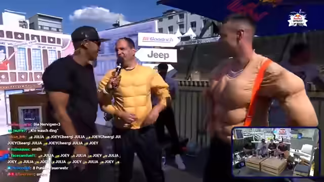 02:10:24Die Streamer unterhalten sich über Essenswünsche, insbesondere Hotdogs und Bratwürste, während Hugo über seine Fortschritte beim Fitness-Tracking spricht. Paul macht sich über den Muskelzuwachs von Hugo lustig, der jedoch keine richtige Reaktion darauf zeigt. Es gibt auch eine Diskussion über ihre bevorstehende Teilnahme bei einem Event, bei dem sie technische Probleme haben.