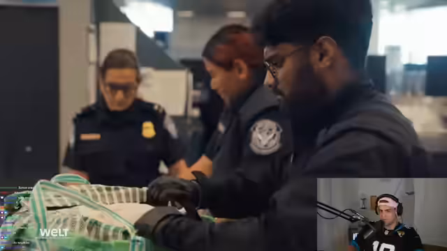 00:20:43Bevor in die eigentliche USA-Reaction eingestiegen wird, erzählt der Streamer eine persönliche Anekdote. Er schildert eine gefährliche Situation in seiner Jugend, in der er aufgrund eines Paintball-Markierers, der ihm aus Amerika per Post geschickt wurde, eine Anzeige wegen Waffenschmuggel von der deutschen Staatsanwaltschaft erhielt. Nach dieser Geschichte leitet er direkt in den ersten Reaktionsteil über, der sich mit den Spannungen und Vorfällen an US-amerikanischen Flughäfen beschäftigt und die Hauptattraktion des Streams darstellt.