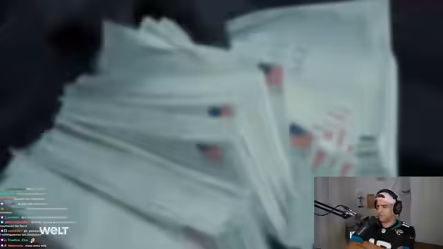 00:08:24Der Streamer trägt ein Jacksonville-Jaguars-NFL-Jersey mit der Nummer 14 (Quarterback Lawrence) und erklärt die Wahl aufgrund des Trikotdesigns und der persönlichen Vorliebe für das Team. Er erwähnt seine jährliche Superbowl-Tradition mit Freunden und berichtet von seinem Besuch beim Superbowl 2023 in Las Vegas. Dabei weist er auf ein Kooperationsvideo mit Paolo Muck hin, das vor seiner Streaming-Karriere entstand und "Paul und Paul retten den Superbowl" heißt.