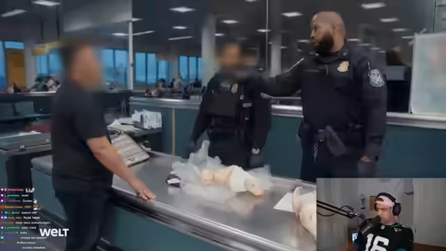 00:21:10Der Streamer leitet zur eigentlichen USA-Reaction über und startet mit dem Thema "Airports". Er erwähnt humorvoll, dass der gezeigte Flughafen-Originalnachbau angeblich für GTA 6 verwendet wird. Die Reaktion zeigt Szenen aus Dokumentationen über Zollkontrollen, Drogenfunde und Lebensmittelprüfungen an US-Grenzpunkten. Der Fokus liegt auf US-amerikanischen Sicherheitsmaßnahmen und persönlichen Anekdoten des Streamers zu Grenzkontrollen.