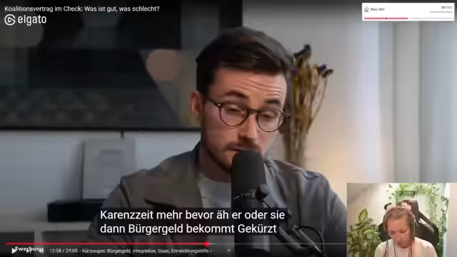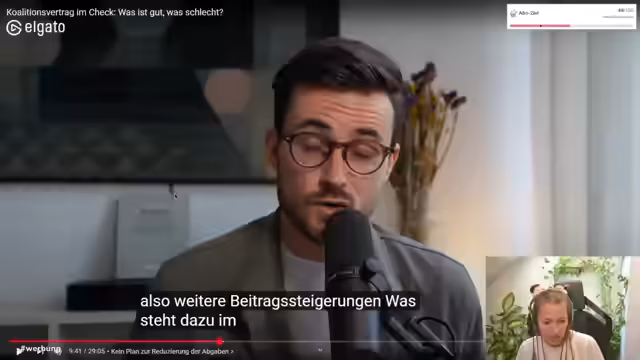 00:23:24Nach einer Pause und der Begrüßung verpasster Zuhörer wird der Fokus auf politische Themen gelenkt. Der Streamer erklärt, nach einer bewussten Politik-Pause aus dem Urlaub in das politische Geschehen einzusteigen. Die Entscheidung, mit einer detaillierten Analyse des neuen Koalitionsvertrags zu beginnen, wird getroffen, um einen schnellen Überblick über die wichtigsten Entwicklungen zu verschaffen und die eigene Reaktion zu moderieren.