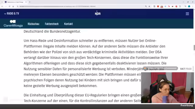 00:05:00Der Streamer berichtet von seiner Teilnahme an einer linken Veranstaltung am Vortag, wobei er erklärt, dass er normalerweise eher in selbstgebauten Safe Spaces für queere oder andere marginalisierte Personen unterwegs ist und nicht in klassisch politischen Organisationsstrukturen. Er beschreibt die Erfahrung als nicht ideal, ohne jedoch in Details zu gehen. Parallel erwähnt er eine positive Rückmeldung von der DKMS, dass er im Dezember Stammzellen spenden darf.
