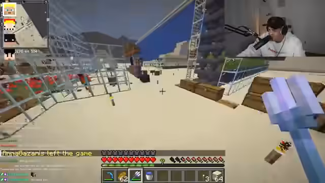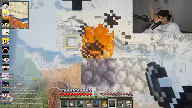 08:54:34Die Streamer arbeiten gemeinsam an der Beseitigung von Materialien um eine Kupferfarm, wobei sie mit dem Trident hochfliegen und mit dem Beacon-Effekt schneller abbauen können. Es kommt zu einem kritischen Moment, als eine Sprengung den Beacon gefährdet. Sie bauen den Beacon kurz ab, um ihn zu schützen, stellen ihn aber wieder her, da er für die Effekte unerlässlich ist. Die Abdeckung der Blöcke, ob Tuff oder Endstone, wird mit Fabo geklärt, der anwesend ist und Anweisungen gibt, um das Projekt effizient fortzuführen.
