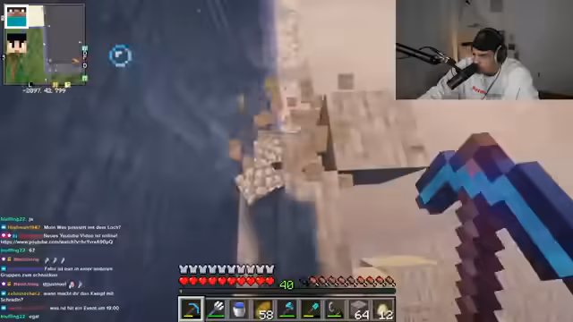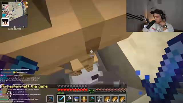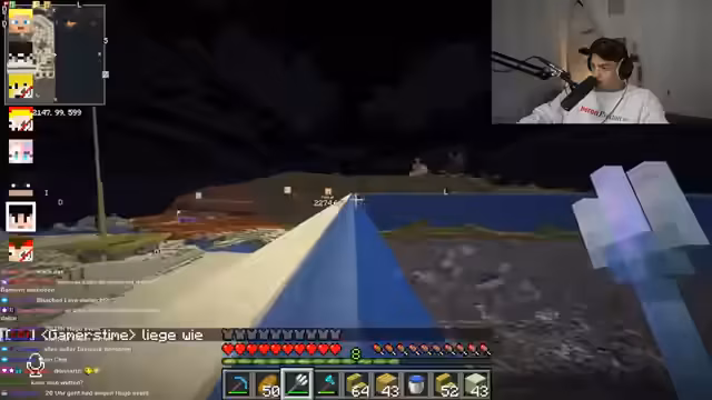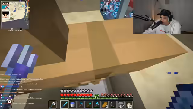 02:15:51Nachdem der Konflikt aufgeklärt ist, wendet sich der Streamer dem gemeinsamen Minecraft-Spiel zu. Er arbeitet daran, ein Loch für einen Kupfergolem auszuheben, was sich als mühsam erweist. Er bittet andere Spieler im Call um Hilfe, plant, mit ihnen auf Abenteuertour zu gehen und plant, verschiedene Spieler wie Monte, Hugo und Rebi auf ihrem Server zu besuchen, um deren Baufortschritte zu betrachten.