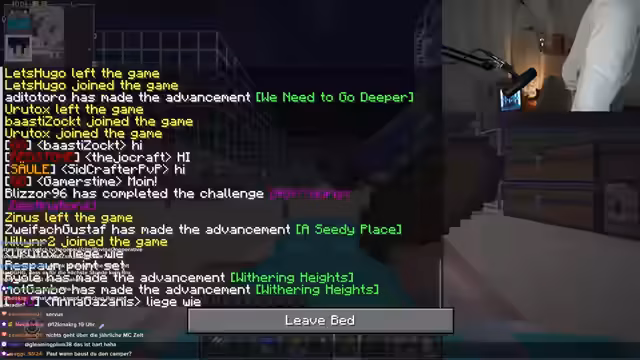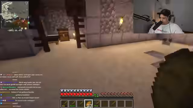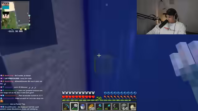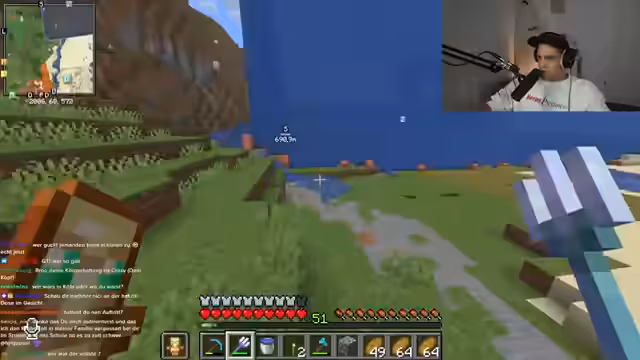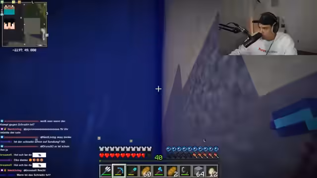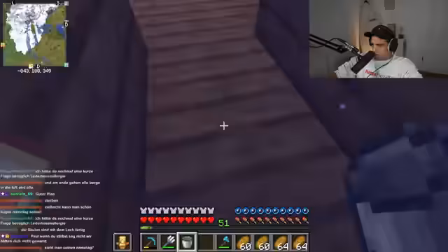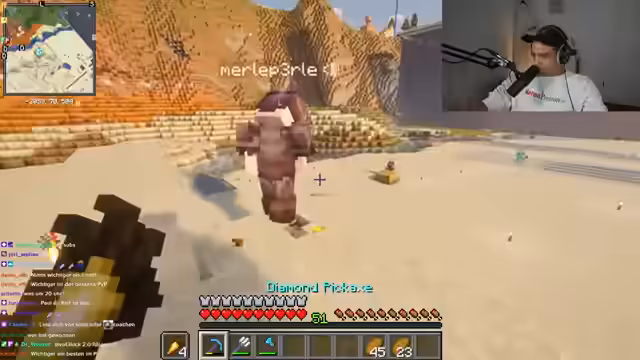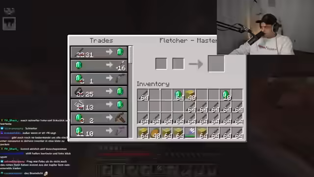 00:01:28Nach einem unbemerkten Tod startet der Streamer bei null und muss sein Equipment neu aufbauen. Mit verbliebenen Ressourcen wie elf Broten und einer Diamant-Spitzhacke befindet er sich im untersten Rang der Teammitglieder. Er plant, durch effizienten Handel mit Dorfbewohnern Emeralds zu sammeln, um sich eine verzauberte Diamant-Rüstung zu kaufen und somit wieder ein vollwertiges Teammitglied zu werden. Das Ziel ist, sich eine solide Ausrüstung zu beschaffen, um in den Nether gehen zu können.