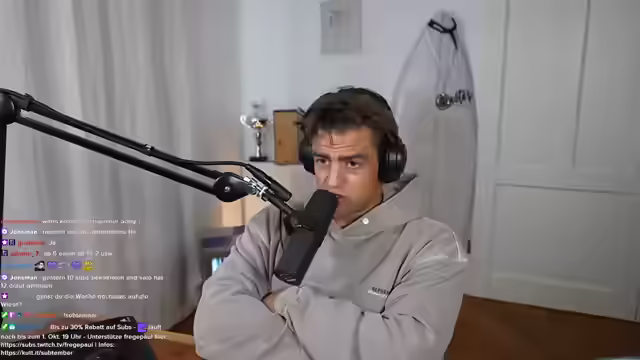 00:07:59Der Streamer berichtet ausführlich über seine Erlebnisse auf dem Oktoberfest, das er als 'Wahnsinn' bezeichnet. Er erzählt, wie er mit Freunden aus Hamburg und Mallorca einen Tag auf der Wiesn verbrachte, der 'kurz ausgeartet' sei. Besonders hebt er den IRL-Stream vom Freitag hervor, der trotz des vermeintlich schlechten Streaming-Tages auf Twitch ein großer Erfolg war. Er erwähnt, dass Jil van der Wude, der eigentlich eingeplant war, sich nach einer Stunde ins Bierzelt verabschiedet hatte und wahrscheinlich immer noch verkatert ist. Ein Telefonanruf mit Jil bestätigt dessen 'Wiesenschmerzen' und dass er bereits wieder arbeiten ist. Der Streamer kündigt an, dass Jil später im Chat dabei sein wird. Zudem wird eine Partnerschaft mit Dolodobledan Lutschtabletten erwähnt, die während der Wiesnzeit besonders gefragt seien.