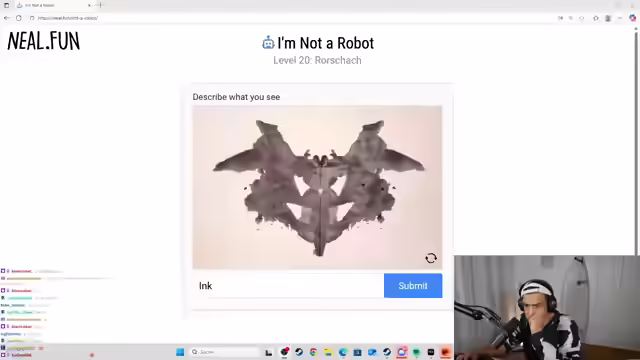 02:35:46Der Streamer kämpft weiterhin mit den kniffligen Aufgaben des Spiels Neil.Fun, insbesondere mit einem Captcha, das ihn auffordert, alle Quadrate ohne Ampel auszuwählen, was er zunächst falsch versteht. Es folgen weitere ungewöhnliche Captchas, darunter eine Liste von Affirmationen, bei der er die Option 'I'm not a robot' auswählen muss, und eine Parkaufgabe, bei der er ein Auto einparken soll, was ihm überraschend gut gelingt. Eine weitere Aufgabe verlangt das Zeichnen eines perfekten Kreises, wobei er sich über die Schwierigkeit mit der Maus beschwert und schließlich mit geschlossenen Augen versucht, einen Kreis zu zeichnen, um eine Wette mit dem Chat zu gewinnen. Es folgen Aufgaben wie das Finden von Hydranten und das Entziffern von Text, die er mit wechselndem Erfolg meistert. Besonders frustrierend sind die Matheaufgaben, bei denen er seine mangelnden Kenntnisse eingesteht und versucht, ChatGPT um Hilfe zu bitten. Allerdings scheitert er daran, die Sprachfunktion von ChatGPT zu aktivieren, was zu weiteren humorvollen und verzweifelten Momenten führt, in denen er ChatGPT direkt anspricht und um Hilfe bittet.