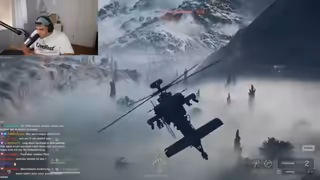 02:25:18Zu Beginn der analysierten Sequenz dominieren Diskussionen über die Schwierigkeiten, gegnerische Flugzeuge zu bekämpfen. Der Streamer beklagt, dass Helikopter und Jets zu schnell und schwer zu treffen sind, da selbst mehrere Raketen des Engineer-Klassen nicht immer ausreichen. Es wird die Taktik beschrieben, wie Gegner gezielt mit Hubschraubern ablenken, während andere Spieler aus der Ferne mit Flakpanzern oder Geschützen angreifen, was eine koordinierte Verteidigung unmöglich macht.