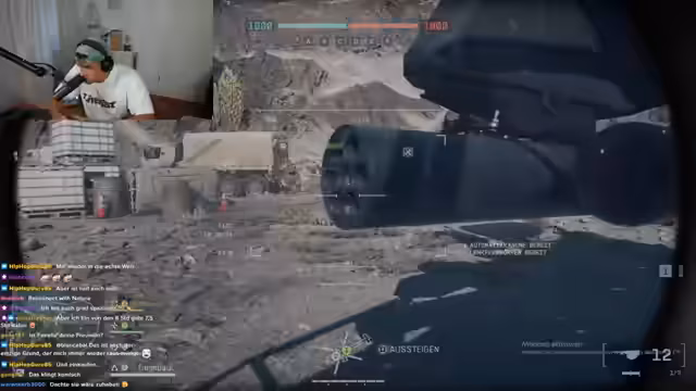 00:19:08Der Streamer wünscht sich mehr Mitspieler für Battlefield 6. Er identifiziert, dass sein Freund Hanky ebenfalls live und Battlefield 6 spielt, und kontaktiert ihn auf Instagram. Nach einigem technischem Aufwand gelingt es, eine Discord-Verbindung herzustellen und die Gruppe um weitere bekannte Streamer wie Romatra und Chef Strobl zu erweitern. Gemeinsam wird ein sogenannter Co-Stream mit geteiltem Chat und Zuschauern gestartet, was als professionelle und geile Premiere beschrieben wird.