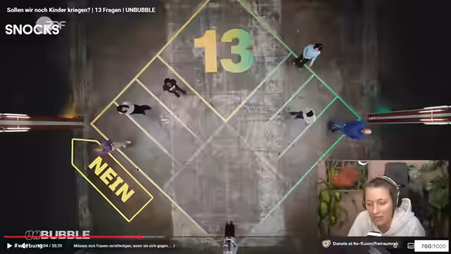 02:58:53Die '13 Fragen'-Folge wird gesichtet und zeigt eine Bandbreite an persönlichen Motiven und Ängsten von Menschen, die sich für oder gegen Kinder entscheiden. Viele berichten von erheblichem gesellschaftlichem und familiären Druck, der besonders Frauen ausgesetzt ist. Die freie Wahl, ob und wann man Kinder bekommt, wird als Illusion bezeichnet, da finanzielle Möglichkeiten, soziale Umstände und körperliche Gegebenheiten diese Entscheidung maßgeblich beeinflussen und oft einschränken.