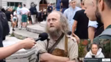00:58:08Einige der Demonstrationsteilnehmer äußern Thesen über Remigration und einen angeblich geplanten Bevölkerungsaustausch, die im Stream als Verschwörungstheorien identifiziert werden. Einer der Teilnehmer erklärt zudem, warum er denkt, dass Menschen mit Migrationshintergrund vermehrt im Niedriglohnsektor arbeiten, und argumentiert, diese seien oft nicht qualifiziert. Der Streamer bewertet diese Ansicht als populistisch und bemängelt den mangelnden Bildungshintergrund und die fehlende Bereitschaft zur Information bei einigen der Demonstranten.