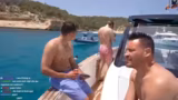 03:23:12Der Versuch, die verlorene GoPro aus zehn Metern Tiefe zu bergen, gestaltet sich als äußerst schwierig. Die Streamer erwägen, mit Gewichten zu tauchen oder die Hilfe von professionellen Tauchern in Anspruch zu nehmen, erkennen aber die Risiken und die Unmöglichkeit ohne die genaue Position des Geräts. Währenddessen ist der Zeit auf dem Boot knapp begrenzt und die Gruppe nutzt die verbleibende Zeit noch für weitere Sprünge und Gespräche. Der Tag neigt sich seinem Ende zu, während über Pläne für den nächsten Tag, wie die Ankunft im Niki Beach Club, gesprochen wird.