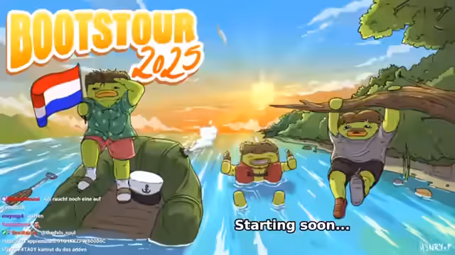 03:56:17Die Stimmung auf dem Boot ist entspannt und ausgelassen. Die Zuschauer werden regelmäßig angesprochen und eingebunden, beispielsweise mit der humorvollen Aufforderung, mitzugucken und ein Kind mit einem Streamer zu zeugen. Marc Eggers und Paul Frege unterhalten sich über den Konsum von Alkohol und Wasser, wobei Marc seine gute Kondition als trainierter Partylöwe hervorhebt. Die Atmosphäre ist geprägt von gegenseitigem Lob und freundschaftlichem Gestech.
