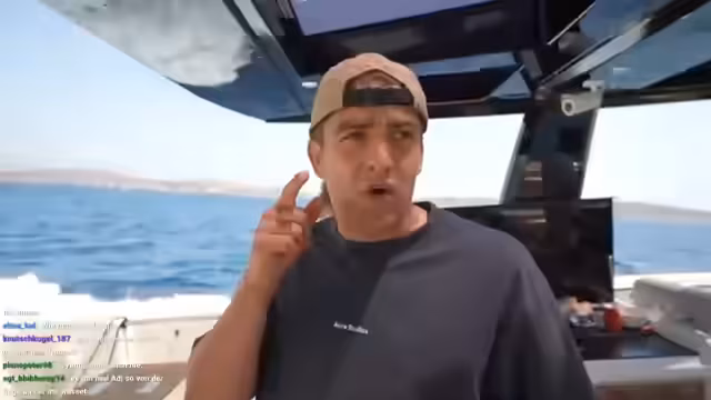 01:00:35Der Fokus liegt auf der Durchführung des geplanten Pranks. Marc Eggers konfrontiert Adi Totoro mit dem vorgeschlagenen Sprung ins Wasser und andeutet, er hätte sich unkontrolliert in die Hose gemacht. Gleichzeitig interagiert die Crew stark mit dem Chat, beantwortet Fragen zu Boot, Kosten und Aktivitäten. Auch die Crew-Mitglieder wie Daniel Hager und Stefan stellen sich der Community vor. Die Stimmung ist locker und unterhaltsam.