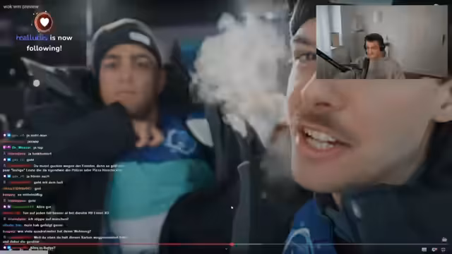03:00:13Während des Streams besuchte Paolo Muck den Streamer und brachte dynamische Abwechslung. Gemeinsam reagierte man auf ein unangenehmes Casting-Video von Oliver Kahn, um das Gespräch am Laufen zu halten. Der Streamer gab dann einen detaillierten Plan der nächsten Wochen vor: Er kündigte eine geheime Mission für den Folgetag, einen IRL-Stream von Red Bull Ibiza Royale mit Hindernislauf und den Besuch der Golf 1 GTI Tour im April an, bei der ein Fiat Multipla als Begleitfahrzeug gezeigt und diskutiert wurde.