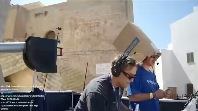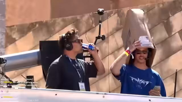 01:53:31Aufgrund der intensiven Hitze und der fehlenden natürlichen Schatten müssen die Streamer improvisieren. Einer von ihnen baut sich spontan einen Sonnenschutz aus einer Kartonschachtel, was im Chat für großen Amüsement sorgt. Gleichzeitig wird immer wieder auf die physische Belastung der Teilnehmer hingewiesen, die bei über 30 Grad Celsius eine große Herausforderung darstellt und zu Erschöpfung und sogar Hitzschlägen führen kann.