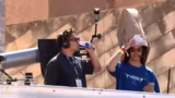 01:13:29Im Finale des Events werden die besten 20 Teams erwartet, und das Hindernis der Streamer wird noch schwieriger, da die Türen nun verschlossen sind. Dies führt zu mehr Aufregung und spektakulären Szenen, bei denen die Teilnehmer mit viel Kraft in die Türen springen müssen. Die Stimmung ist hoch, besonders wenn Teilnehmer wie ein Hochzeitspaar verkleidet erscheinen, was für zusätzliche Unterhaltung sorgt. Die Teilnehmer stammen aus aller Welt und reagieren unterschiedlich, einige finden es spaßig, andere sind verärgert über die Herausforderungen.