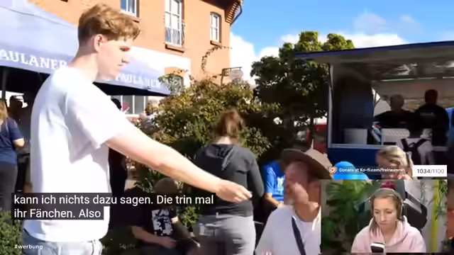 00:21:46Der Streamer beginnt mit der Darstellung seiner Undercover-Mission. Er beschreibt, wie er in einem Weidel-T-Shirt das Festgelände betritt, um anonym zu bleiben und Gespräche zu führen. Dabei gerät er in eine unangenehme Situation und wird von einer AfD-Anhängerin konfrontiert, die ihn als links erkennt und zur Rede stellt. Parallel zu seiner Mission befindet sich ein weiterer, bekannter Undercover-Journalist namens Eikot vom Kanal 'Klare Kante' auf dem Fest, der seine eigene, andere Agenda verfolgt.
