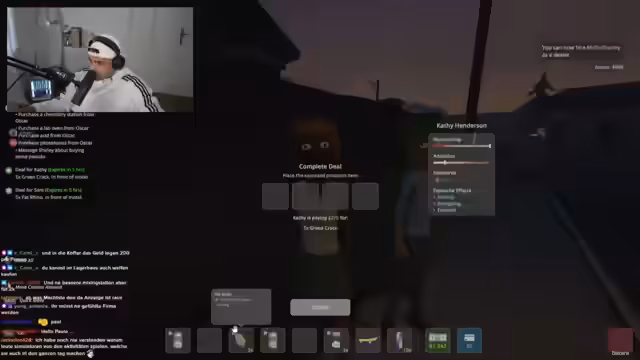 02:39:49Der Stream konzentriert sich intensiv auf das illegale Drogengeschäft. Der Streamer produziert und mischt verschiedene Substanzen wie Green Crack mit Viagra, was er als Fat Reno bezeichnet, und stellt deren süchtig machende Wirkung heraus. Es gibt Planungen, einen neuen Botanisten und einen Chemisten als Mitarbeiter einzustellen, um die Produktion zu optimieren und die Pflanzen zu pflegen. Das Ziel ist, eine effiziente Drogenfabrik aufzubauen, um den Umsatz zu maximieren.