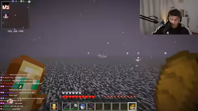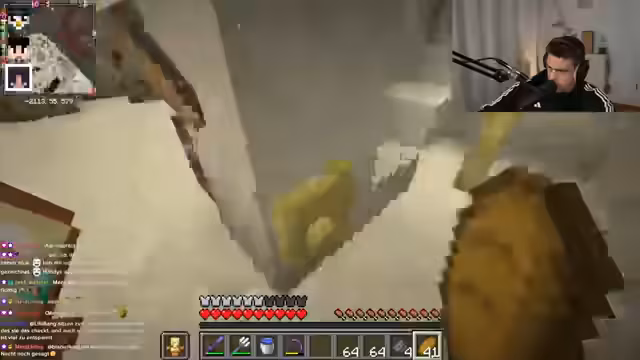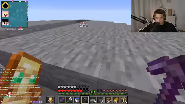 02:05:15Der Streamer versucht, den kranken Niki zu erreichen und fragt, ob er sich AFK an die Schießpulver-Farm stellen könnte. Anschließend macht er sich auf den Weg zur Hexenfarm, um mehr Schießpulver für die geplante Explosion zu besorgen, gerät aber auf dem Weg komplett in die falsche Richtung und muss navigieren.