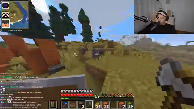 08:48:51Kuba repariert seine Ausrüstung und diskutiert Farmstrategien mit Paul. Es kommt zu Konflikten mit anderen Spielern: Kuba beschuldigt 'Papa Latten' (Kevin), seine Bäume zu stehlen, und Merle stiehlt ihm eine Axt und Goldnuggets. Gleichzeitig plant Kuba, unter Wasser nach Diamanten zu suchen, und diskutiert die Verwendung eines Totems der Unsterblichkeit als Sicherheitsnetz. Die Gruppe betont die Wichtigkeit von Ressourcenmanagement für zukünftige Aktionen.