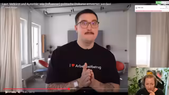 00:23:23Der Streamer stellt das Video von Vincent Scatter mit dem Titel „Verkürzt und autoritär wie Influencer politische Diskurse entwerten“ vor. Er betont, dass er normalerweise versuche, sich aus dem Influencer-Talk herauszuhalten, sich aber in diesem Fall unkompliziert beteiligt hat. Anschließend kritisiert er eine Verlinkungspraxis in der YouTube-Szene, bei der Videos oft nicht direkt verlinkt werden, was er als unfair empfindet. Er kündigt an, das Video gemeinsam mit den Zuschauern zu analysieren und sie zur Diskussion einzuladen.