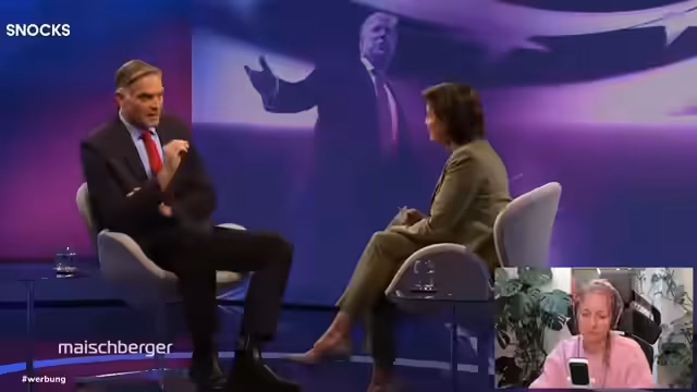00:08:56Der Stream wird mit dem Thema Maischberger gestartet. Die Moderatorin begrüßt die Zuschauer und stellt die Gäste vor: Felix Banaschak von den Grünen und Thorsten Frei, Kanzleramtsminister der CDU. Sie diskutieren über Pläne für den wirtschaftlichen Aufschwung in Deutschland und die Gefahr eines russischen Angriffs auf die Nazis. Es ist eine illustre Runde, mit einer mäßigen Diversität, was die Streamerin kritisch hinterfragt. Sie wünscht sich mehr marginalisierte Personen auf politischen Bühnen.