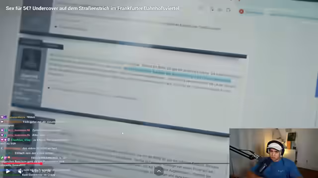 00:55:24Der Streamer, in der Rolle eines Freiers, fährt zum Straßenstrich, um mit Frauen und Freiern ins Gespräch zu kommen. Er beschreibt die Situation als ungewöhnlich und aufregend, da er alleine unterwegs ist. Mithilfe einer versteckten Kamera versucht er, Informationen über die Abläufe und Motivationen der Beteiligten zu sammeln. Er spricht einen Mann an, der sich als Freier entpuppt und bereitwillig Details über Preise und Praktiken preisgibt. Es wird deutlich, dass die Frauen oft suchtkrank sind und ihre Abhängigkeit von den Männern ausgenutzt wird, was als „richtig, richtig ekelhaft“ beschrieben wird. Die Preise für sexuelle Dienstleistungen liegen demnach bei etwa 30 Euro für 20 Minuten.