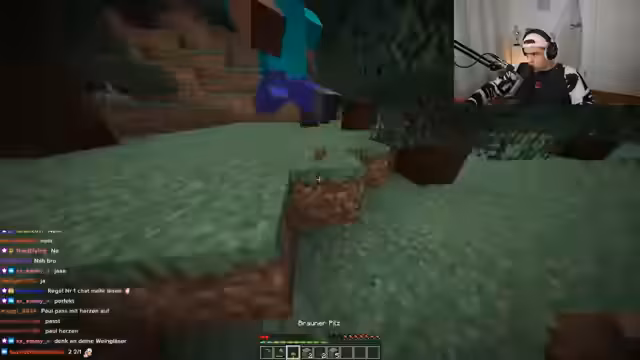 02:21:55Die gemeinsame Erkundung des Biom wird gefährlich, als sie auf Wölfe treffen, die sie angreifen. Die unvorhergesehene Bedrofung führt zu Verwirrung und Stress, da sich die beiden orientierungslos fühlen. Als die Nacht einbricht und Monster wie Skelette und Zombies auftauchen, häufen sich die Probleme. Der Streamer verliert durch Angriffe der Monster Lebenspunkte und verliert zeitweise die Orientierung, was zu chaotischen Situationen und Rettungsmanövern führt.