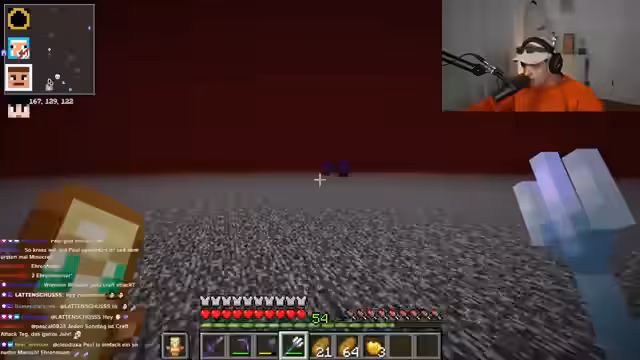 05:07:47Nach zahlreichen missglückten Versuchen gelingt es dem Streamer, einen besonders anspruchsvollen MLG-Trick beim allerersten Versuch zu meistern. Der Erfolg wird im Chat gefeiert und motiviert zu einem sofortigen, weiteren Versuch. Dieser Versuch scheitert jedoch katastrophal, da der Streamer stirbt und von anderen Spielern angegriffen wird. Nach dem Tod kommt es zu kurzen, unklaren Interaktionen mit anderen Spielern wie Niki und Philo.