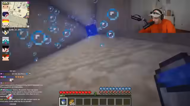 01:27:37Das Quiz geht mit einer schwierigen Frage nach den Zutaten für einenmaximal verzauberten Hammer weiter, die der Streamer souverän beantwortet. Anschließend wird eine hypothetische Minecraft-Frage zum Fang eines Delfins für ein Aquarium gestellt. Der Gameplay-Fokus verlagert sich auf die gemeinsame Erkundung der Welt, die Planung von Farm-Projekten wie der Bad Omen Farm und die Vorbereitung auf eine gemeinsame 'Trial Chamber'-Exkursion.
