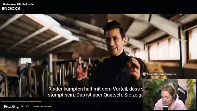 03:40:09Der Streamer kündigt an, auf ein Undercover-Video über die Milchindustrie zu reagieren, das vom YouTube-Kanal 'YouTube Tierarzt' gedreht wurde. Dieses Video, das nur 15 Minuten dauert, beschäftigt sich mit Zuständen in der Milchindustrie. Der Streamer, selbst großer Fan von Karim Montasa, erwartet ein aufschlussreiches und hartes Video. Dabei werden auch gesellschaftliche Themen wie Veganismus und der Wandel im Konsum von Milchalternativen wie Hafer- und Mandelmilch angesprochen, die teilweise günstiger sind als Kuhmilch.