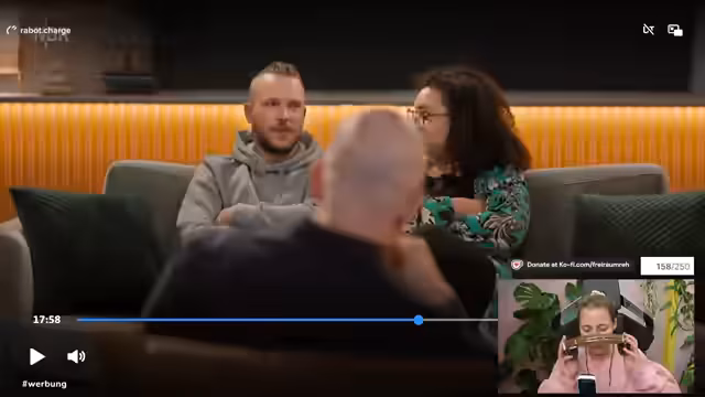 03:41:16Nach technischen Hinweisen zu Kofi-Spenden (ohne Transaktionsgebühren) wechselt das Format zur Paartherapie. Es wird erklärt, dass ungeskriptete Sessions mit verschiedenen Paaren gezeigt werden. Das erste vorgestellte Paar ist ein älteres Ehepaar, das über Tinder zusammenfand. Ihr Kernproblem: Er kann nur sexuelle Kontakte ohne emotionale Bindung, während sie emotionale Nähe und Sex vermisst. Die letzte gemeinsame Intimität fand vor drei Jahren in der Hochzeitsnacht statt. Der Therapeut empfahl getrennte Sexualtherapie.