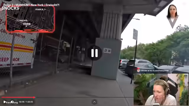 00:08:53Die Streamerin kündigt an, dass der Manhunt Marathon um halb starten wird und lädt die Zuschauer ein, über ihre eigenen Krankheiten zu sprechen. Sie bestätigt ihr Interesse an Manhunt, das sie bereits seit Wochen erwähnt hatte, und erwähnt, dass sie und Monty zuerst "Paartherapie" geschaut haben, bevor sie sich Manhunt widmen. Es folgt eine Anekdote über Blutspenden und die finanzielle Bedeutung während ihrer Ausbildung, die sie als sehr anstrengend beschreibt. Die Streamerin gibt zu, das Manhunt-Format überhaupt nicht zu kennen und bittet die Community, ihr die Regeln ohne Spoiler zu erklären. Es wird das Format als eine Art "Fangen in New York" beschrieben, ähnlich dem "Jetlag"-Kanal, den sie sehr schätzt.