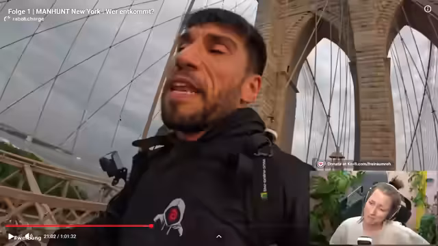 02:39:50Es wird ein Gewinnspiel beworben, bei dem man durch Buchung über einen speziellen Code 250 Euro gewinnen kann, die dem Stromkonto gutgeschrieben werden. Der Streamer empfiehlt den nachhaltigen Stromanbieter Rabot, bei dem er selbst seit fast zwei Jahren mit seinem Zuhause und seit Mai auch mit seinem Studio Kunde ist, unabhängig von der Kooperation. Anschließend wird die zweite Folge des MANHUNT Marathons gestartet. Es wird eine halbe Folge geschaut, bevor die nächste Pinkelpause angesetzt wird. Die Spieler befinden sich auf dem Weg zur Brooklyn Bridge, wobei es direkt zu Komplikationen kommt. Ein Spieler ist fünf Blöcke entfernt und trifft auf Fabio Schäfer. Es wird diskutiert, ob die Spieler bei Sichtkontakt noch fliehen können und die körperliche Verfassung des Streamers ist beeinträchtigt. In zwölf Minuten werden die ersten Pings erwartet, die den Standort der Spieler verraten.