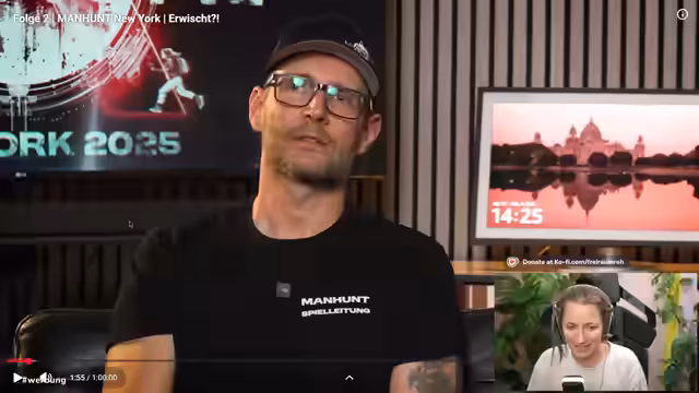 01:32:47Ein Spieler gesteht, dass er aufgrund seiner Vergangenheit als Raucher körperlich nicht fit ist und mit Atemproblemen zu kämpfen hat, während er versucht, aus Manhattan zu fliehen. Er betont die negativen Auswirkungen des Rauchens. Es wird ein Strawpoll gestartet, um herauszufinden, für welchen Spieler die Zuschauer mitfiebern. Ein anderer Spieler plant, sich an der Küste des East River entlang nach Norden zu bewegen, da er vermutet, dass die meisten anderen Spieler Richtung Brooklyn fliehen werden. Annika, eine weitere Spielerin, bleibt ebenfalls in Manhattan, da sie sich vor dem Start übergeben musste und sich nicht verausgaben möchte. Es folgt eine Werbung für eine Berufsunfähigkeitsversicherung, die als Überleitung zu Peters fast Herzinfarkt bei 'Manhunt' genutzt wird. Der Sponsor Clark bietet einen Rabattcode für Versicherungsverträge an. Ein Spieler überlegt, die Train Station zu nutzen, um über den Fluss nach Osten zu gelangen, und beschreibt sein Outfit als eine Mischung aus Penner- und Jogger-Style. Spieler 6 (Fabio) bewegt sich in der Lafayette Street.