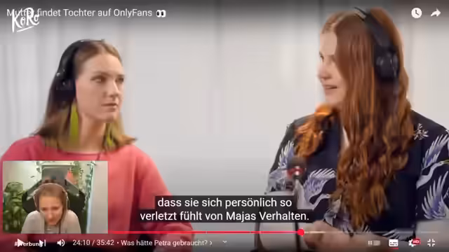 01:42:39Die Therapeutin analysiert die Reaktionen der Mutter als Ausdruck von gesellschaftlich geprägten Ängsten. Petras Ablehnung sei weniger auf die konkrete Tätigkeit ihrer Tochter zurückzuführen, sondern auf tief verwurzelte Vorurteile und die Angst vor sozialem Stigma. Der Konflikt wird als ein typischer Generationenunterschied im Wertegefüge dargestellt, der durch das Thema OnlyFans nur sichtbar gemacht wird. Maya hingegen wird als lösungsorientiert beschrieben, was sich darin zeigt, dass sie vorschlägt, die Differenzen nicht im Fokus der Alltagsbeziehung stehen zu lassen.