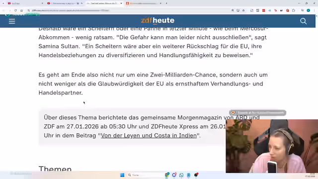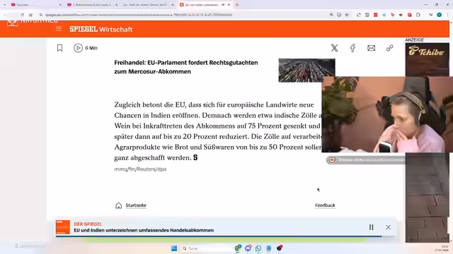 00:27:33Der Stream widmet sich dem neuen umfassenden Handelsabkommen zwischen der EU und Indien. Die strategische Bedeutung dieses Deals wird erläutert, um sich von den USA wirtschaftlich abzukoppeln und alternative Märkte zu erschließen. Ein zentraler Punkt ist die Bedeutung für die deutsche Autoindustrie, da Zölle auf Fahrzeuge drastisch gesenkt werden. Allerdings wird auch kritisch hinterfragt, wer von dem Abkommen tatsächlich profitiert, und es wird die Forderung nach einem Lieferkettengesetz erhoben, um Menschenrechte stärker zu berücksichtigen.