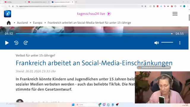 01:12:58Frankreich arbeitet an einem Gesetz, das den Zugang zu Social Media für Jugendliche unter 15 Jahren verbieten soll. Präsident Macron begründet dies damit, dass die Gehirne und Emotionen von Kindern nicht zum Verkauf stehen. Eine psychotherapeutische Mutter berichtet, dass ihre Tochter nach der Nutzung von Social Media schwere Depressionen und eine Magersucht entwickelte. Die Organisation Algos Victima unterstützt den Gesetzentwurf, da bisherige Regulierungsversuche der Plattformen nicht ausreichen, um die systemischen Risiken zu mildern.