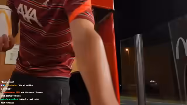 00:25:00Unterwegs halten die beiden spontan an einem McDonald's, um sich zu stärken. Die Bestellung wird zu einem Running Gag, als sie für Eggers, der anscheinend hohe Ansprüche an sein Essen hat, ein Happy Meal und diverse andere Snacks bestellen. Während des Wartens und Essens interagieren sie intensiv mit dem Chat, tauschen Anekdoten aus und planen parallel die weiteren Schritte der Fahrt, die Atmosphäre ist geprägt von Humor und guter Laune.