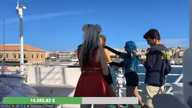 00:37:21Während des Streams wird für die Seenotrettung im Mittelmeer gesammelt. Der Streamer geht kurz an Land, um sich Trinkwasser für das Team zu besorgen. Dabei erkundet er die Gassen der Stadt. Er erwähnt, dass es in Syrakus hauptsächlich Felsenstrände gibt und nur ein kleiner, künstlicher Sandstrand mitten in der Stadt existiert. Die Spendenaktion läuft weiter und die Gemeinschaft wird zum Spenden ermutigt.