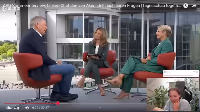 02:40:45Auf eine Frage bezüglich der Berliner Veranstaltung wird von Jan van Aken laut Streamer klargestellt, dass die Hamas eine faschistische Organisation sei und mit ihr keine Zusammenarbeit bestehe. Die Partei habe die Veranstaltung distanziert, da lokale Bezirksverbände eigenständig gehandelt hätten. Es wird betont, dass die rote Linie gegen Antisemitismus festliege. Gleichzeitig kritisiert der Antisemitismusbeauftragte Felix Klein das Verhalten der Linken als gefährlich, da es israelbezogenen Antisemitismus normalisiere, was der Streamer jedoch als wissenschaftlich umstrittene Definition einstuft.