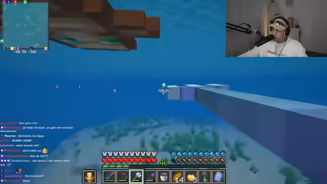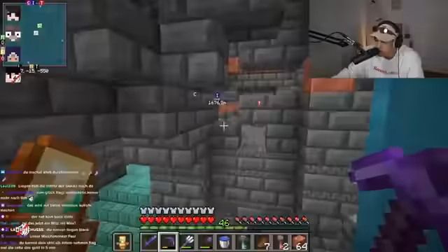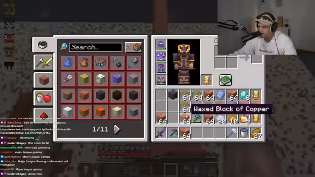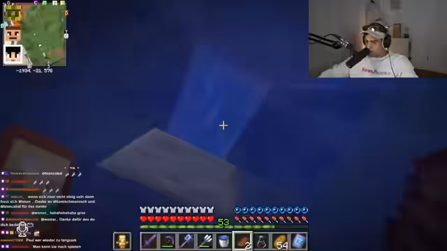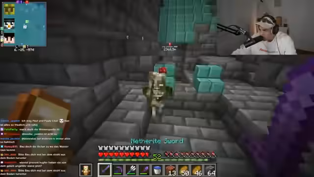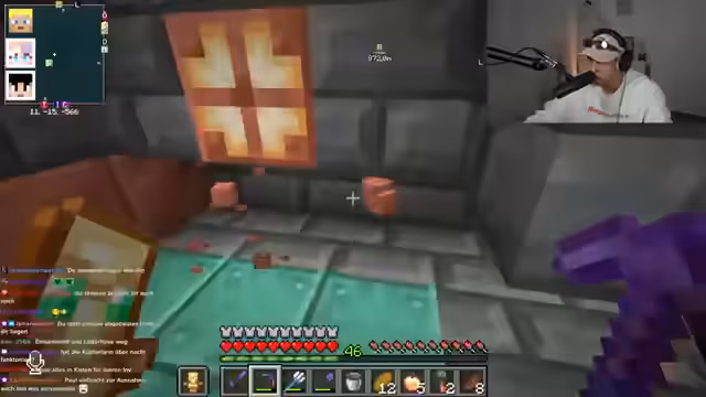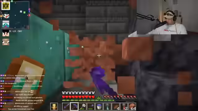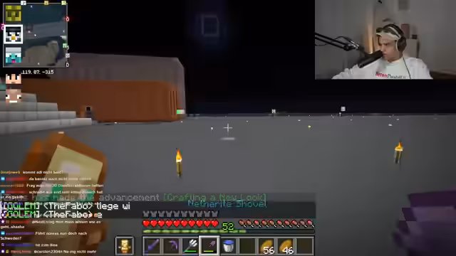 02:52:47Der Streamer interagiert intensiv mit dem Chat und plant gemeinsame Aktionen. Es wird ein Deal mit dem Spieler Feister ausgehandelt: Er soll bei einer Trial Chamber helfen, im Austausch dafür ein Windburst-Buch erhalten. Gleichzeitig wird die Hauptaufgabe für den Tag definiert: Das Sammeln von Kupfer für den Bau eines Kupfergolems. Das Projekt gilt als priorisiertes Ziel für das gesamte Team.
