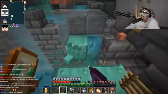 06:45:50Nach den privaten Konflikten widmet sich der Streamer wieder dem Gameplay. Er trifft sich mit Chef Strobl, um gemeinsam eine Trial Chamber zu erkunden. Er erklärt den Aufbau der Kammern, in denen man durch das Trinken von speziellen Tränken Monster bekämpfen muss, um Schlüssel zu erhalten. Mit diesen Schlüsseln können Truchen geöffnet werden, in denen wertvolle Beute wie verzauberte Bücher, insbesondere "Wind First" für Hämmer, erwartet werden. Der Streamer und sein Team starten den Kampf gegen eine Vielzahl von Monstern, dar vergiftete Bogenschützen, Wind-Bursters und Mini-Creeper.