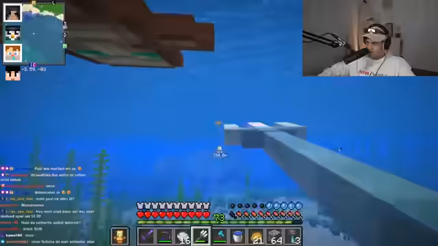 08:11:09Der Stream beginnt mit Diskussionen über die Funktionsweise von Endertruhen als mobile Lagerlösungen und die Planung einer gemeinsamen Aktion mit Merle und Kars Crafter an ihrer Base. Es wird der Transport von Ressourcen wie Kupferblöcken aus einer Trial Chamber thematisiert, aus der 70 bis 80 Stacks abgebaut wurden. Dabei wird ein Problem mit der Landung bei der Base durch die Größe eines Schiffes von Kars Crafter erwähnt. Für den geplanten Bau einer Kupfergolem-Farm werden die benötigten Materialien, insbesondere Waxed Block of Copper, identifiziert und das Projekt als monumental eingestuft.