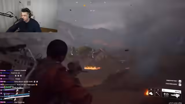 01:55:47Paul und Romatra finden einen anderen Spieler, der die Queen angreift, und schließen sich dessen Team an. In einem chaotischen Kampf gegen den Endgegner stirbt Paul, der daraufhin aus dem Spiel aussteigt. Anschließend treffen sie im Spiel auf zwei deutsche Spieler, die auf Tucheuchjagend bleiben. Als diese bemerken, dass sie den Streamer Paul Frege im Spiel haben, bitten sie um ein Foto mit ihm, was eine witzige und unerwartete Interaktion zwischen den Spielern und der Community darstellt.
